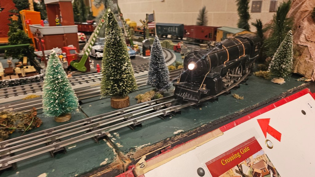 I felt like a child again, eagerly pressing buttons and craning my neck to take it all in. Every section had been lovingly created by a volunteer using their own personal train sets. One display even featured a train over a hundred years old, still running, still enchanting, a direct link to the earliest days of electric model trains. It was humbling to realize how many Christmases that little engine had seen.