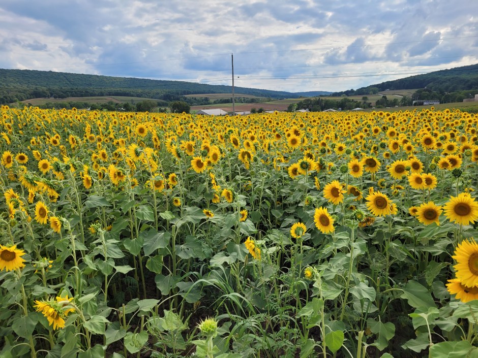 When one thinks of sunflower fields, one may think of the endless fields of Tuscany and forget to look in one’s own backyard. I will say that sunflower fields have been gaining popularity, at least in my area with farmers now taking time to plant fields for visitors to come and enjoy. Most will allow you to leave with a single memento of your visit. One flower to bring you sunshine. At Second Mountain, you are encouraged to bring as many containers as you can because for just a few dollars, you can pick as many sunflowers as you desire! And I did!
