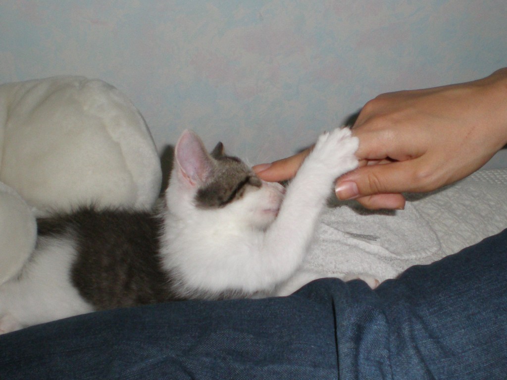 I still remember on the second or third morning that I had him, I woke up and he came trotting out from a hiding place, mewing, desperate to get up to me, he leapt to cling to the blanket, not able to quite get up to the bed. I plucked him up in one hand and brought him close to me telling him not to worry that I would be his mama. That was the moment I truly bonded with him as my baby kitten and I still adore him.