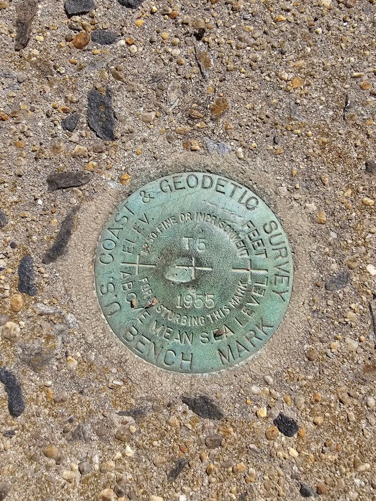 Most of what we found would be considered negative data. In other words, we didn’t find anything where we dug that was of interest to Mr. Nevin. I believe my sister and I surprised him in our enthusiasm for negative data but for us the treasure was in experiencing the technique and hearing the explanation for how a dig is done much more so than any treasure we may have found. Mr. Nevin explained that many years ago a site survey was conducted to determine there was a site of interest, but that the boundaries had not been recorded. Therefore, it fell to us to make that determination for purposes of a larger dig later. The medallion recording a geodetic survey in the 1950’s was considered the 0,0 point for purposes of the survey and it was primarily conducted along the north, east quadrant of the the 0,0 point. Hence, the designation of N (for north) and E for (east) for the different places we dug.
