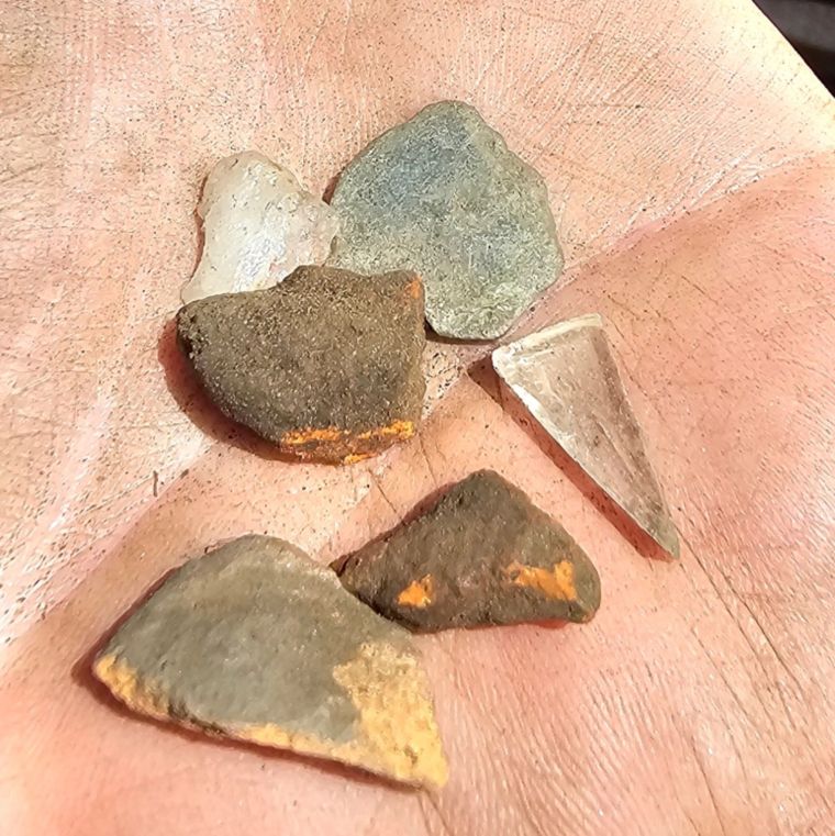 Even though we did not find much in the way of positive data, the other pair found several different shards from flint making. Prior to digging in, Nevin showed us several examples from previous surveys of what we were looking for, pottery shards, arrowheads and flint. He seemed somewhat apologetic that we did not find anything in our own adventures, but we reassured him that “no” data was still data worth finding. Afterall, that was the whole point of the survey as most points were not expected to yield much since the area utilized was likely to be small.