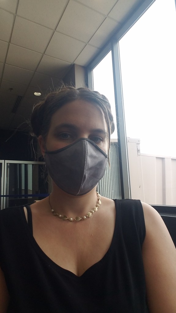 During COVID, I opted for a sleeves top with a light jacket and a Norwex cloth mask for a plane ride. My hair was up in braids that kept it out of my way and allowed me to comfortably recline when I went out to visit some friends in Michigan.