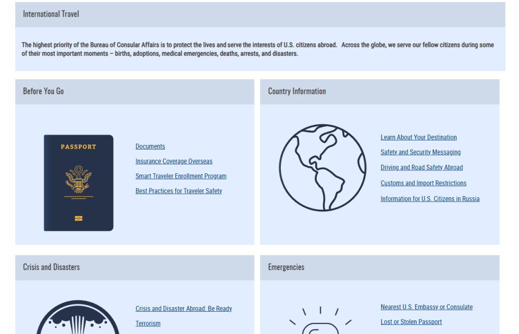 In addition to safety, be sure to look up the local emergency number for the country you are visiting. Dialing 911 is not a universal number which will connect you to emergency services. Be sure to program that number in your phone along with the number of the US consultant for the country you’ll be going to.